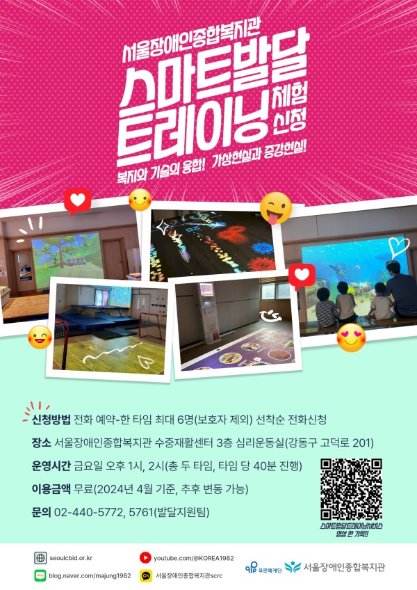 서울장애인종합복지관 스마트발달트레이닝 체험해 보세요. 지금 신청해 보세요.
