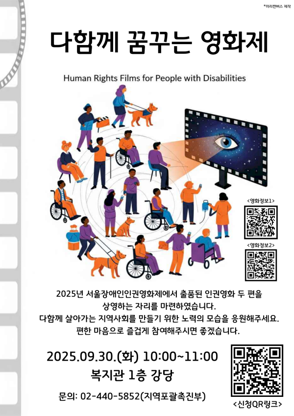 서울장애인종합복지관에서는 '다함께 꿈꾸는 영화제'를 개최합니다.