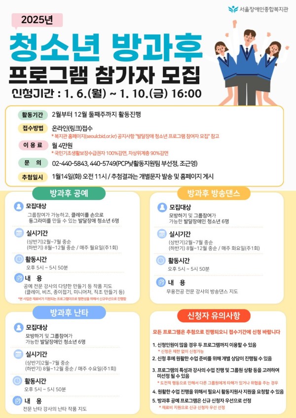 2025년 청소년 방과후 프로그램 참가자 모집 안내드립니다.