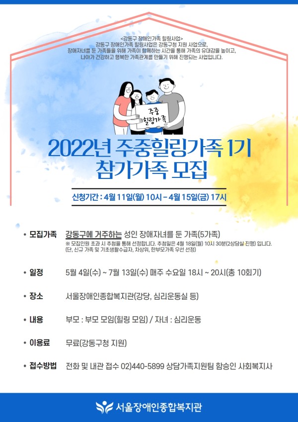 마감 2022년 강동구 힐링사업 주중힐링가족 1기 모집(4/11-4/15)