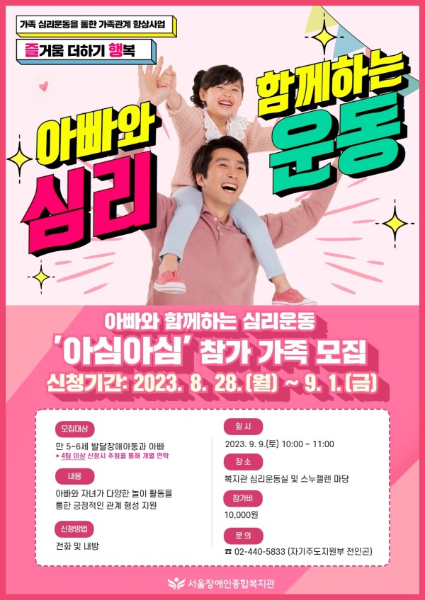 모집대상: 만5~6세 발달장애아동과 아빠 (*4팀 이상 신청시 추첨을 통해 개별 연락)