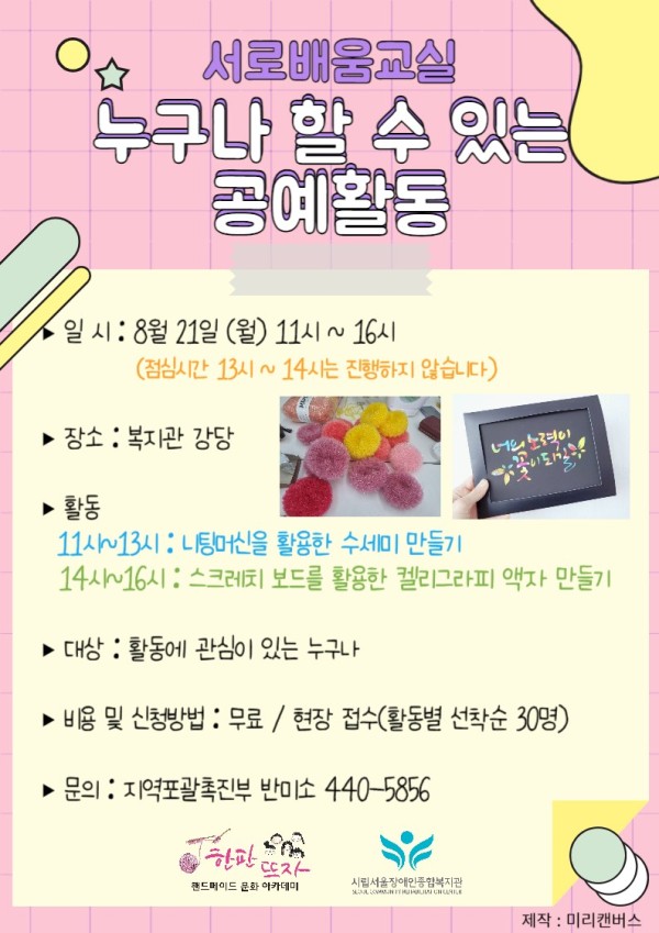 마감 서로배움교실 "누구나 할 수 있는 공예활동" 참가자 모집