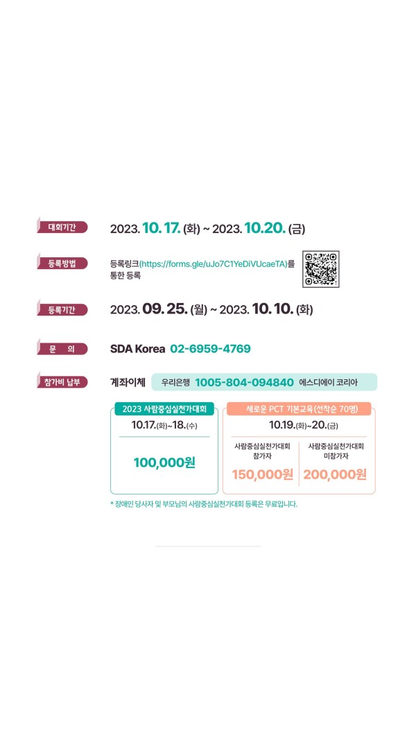 가. 2023 사람중심실천가대회 10. 17.(화) ~ 10. 18.(수) : 100,000원