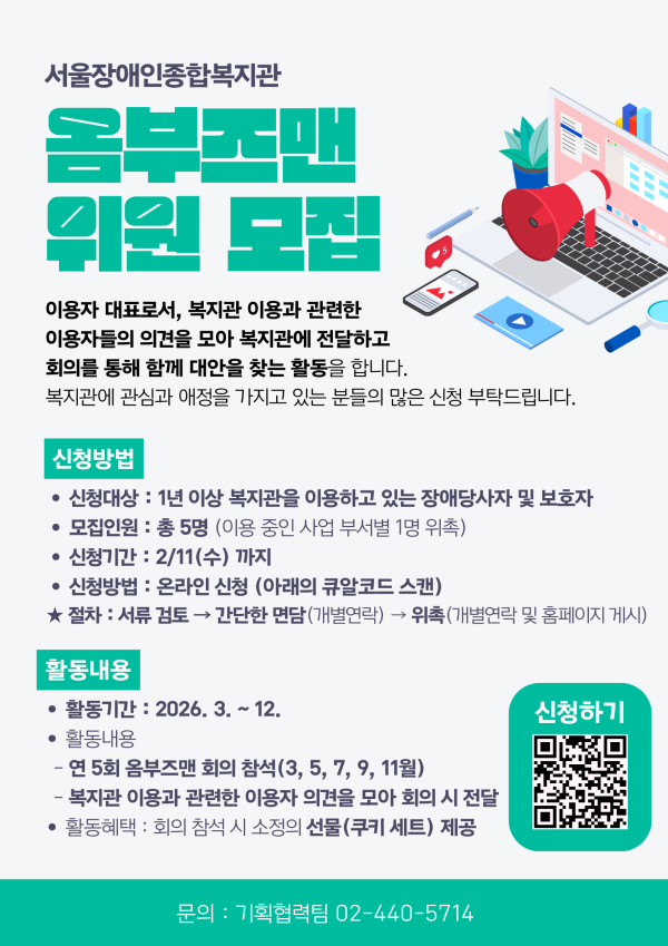 모집 2026 서울장애인종합복지관 옴부즈맨 위원 모집