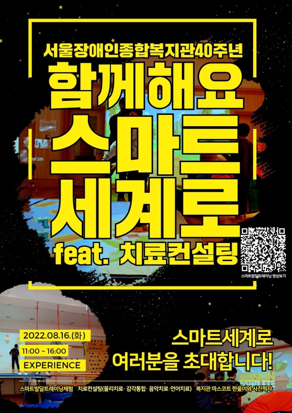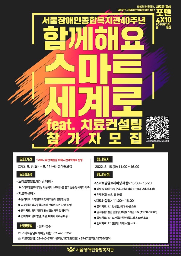 복지관 개관 40주년을 맞아 "함께해요 스마트 세계로 feat. 치료컨설팅" 행사를 진행합니다.