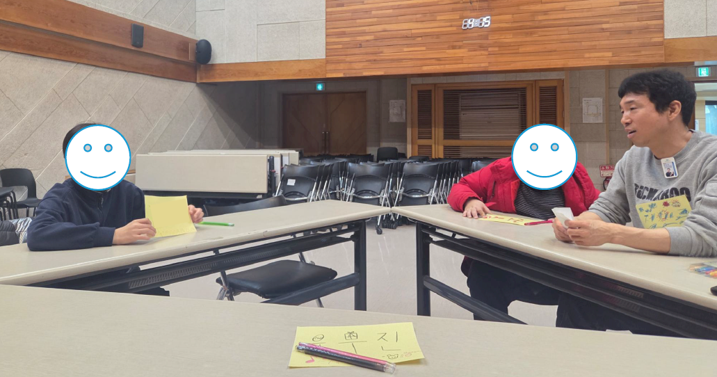 서로에게 어울리는 색깔도 추천해주고 좋아하는 음식을 몸으로 표현하면서 강당은 웃음소리로 가득해졌습니다.