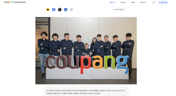 이미지 : 쿠팡 뉴스룸 홈페이지 캡쳐이미지