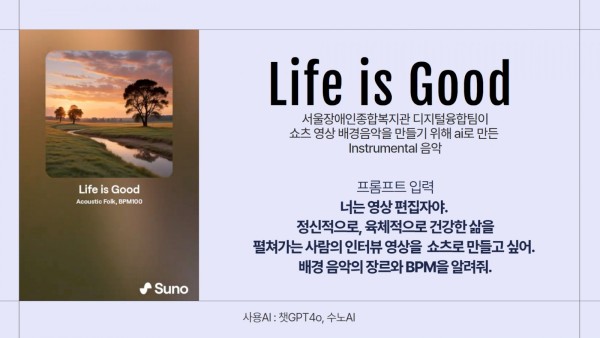 [링크 연결 : 챗지피티+수노+망고보드를 활용하여 쇼츠를 제작한 과정이 있는 서울장애인종합복지관 블로그]