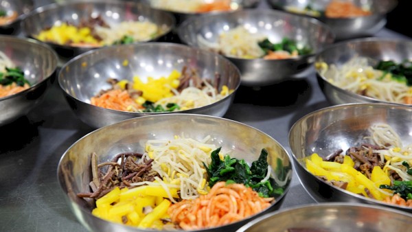 ECO 밥상으로 나온, 이날의 메뉴는 전주비빔밥, 팽이 된장국, 고구마 맛탕, 계란프라이, 배추김치로 탄소 발생이 적은 식재와 조리법으로 만들었습니다.