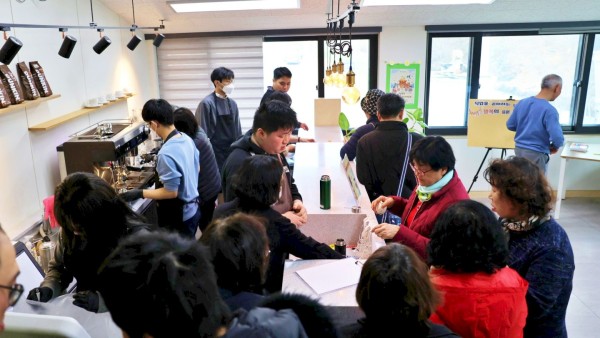 고소한 커피 향이 은은하게 풍기는, 흡사 작은 카페에서 복지관 직업적응훈련생 4명이 진짜 카피 점장님처럼 책임감 있게 카페를 운영하고 있었기 때문입니다.