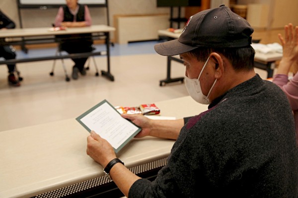 행사 시작 전, 자원봉사자들에게 카드를 전달했습니다. 카드 안에는 복지관의 정기 자원봉사자를 위한 곽재복 관장의 감사 인사 편지가 담겨있었습니다.