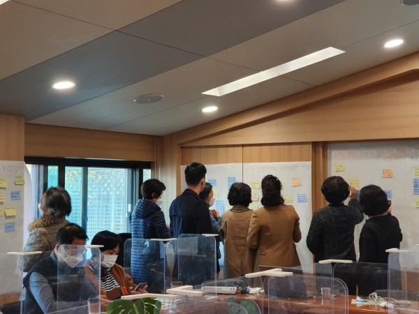 각자의 능력이 다양해 서로에게 힘이 되어줌", 부정적인 생각이 긍정적으로 변화됨.", "서로의 지지와 협력으로 더 이상 외롭지 않다.", "큰 재능이 아니어도 필요로 하는 사람이 있음을 알았다.", "나를 애해해주는 말을 듣고 감동을 받음.", "자녀의 잠재된 능력을 알게 되어 자립을 꿈꾸게 됨." 등을 나누어주셨습니다.