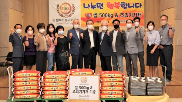 "나누면 행복합니다" 행복미래아카데미 쌀500kg, 조리 기자재 전달