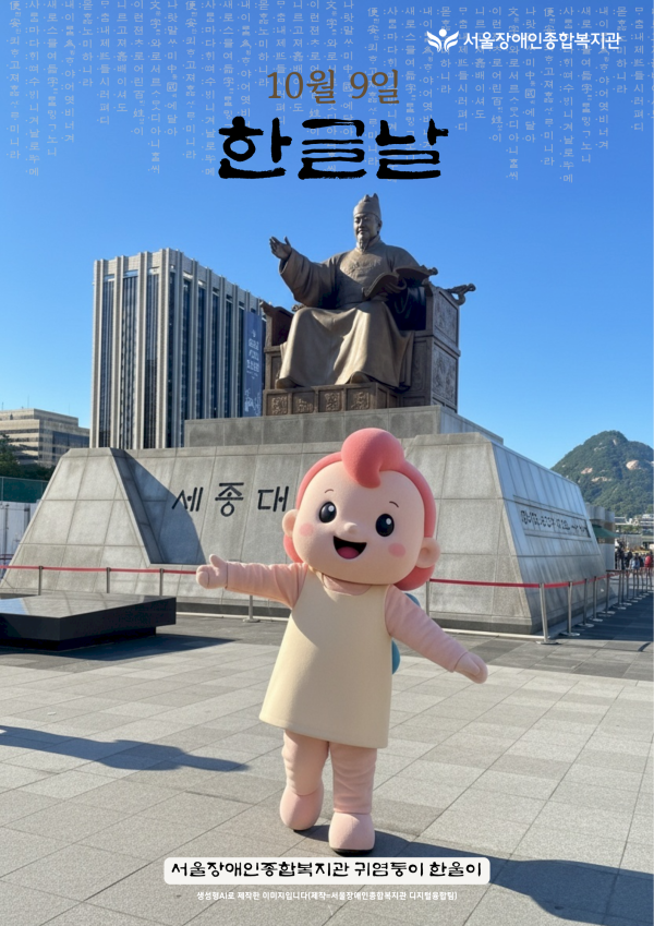 한글날, 복지관 상징 중 하나 한울이가 광화문 세종대왕상에?!