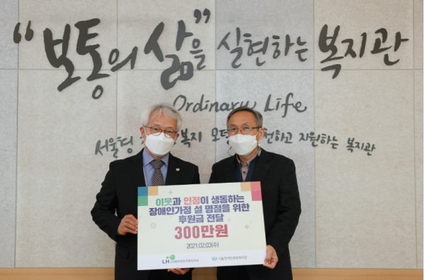 LH 한국토지주택공사 서울동부권주거복지지사(지사장 김정기)가 저소득 장애인 가정이 풍성한 설 명절을 보낼 수 있도록 기금을 지원했습니다.