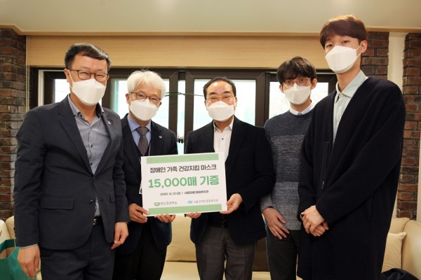 마스크를 전달하기 위해 금천구에서부터 직접 복지관을 찾은 김용일 마케팅 이사는 예전 여행사를 운영하던 때에 여러 장애인단체와 일하며 몸이 불편한 분들을 만났다고 합니다. 코로나19 상황처럼 사회적으로 대다수가 어려움을 겪는 때에는 자칫 사회에서 소외될 수 있는 장애인, 노인을 더 많이 살피고 꼭 기억해야 하기에 우리 복지관뿐만 아니라 여러 사회복지 기관(단체)에 마스크를 직접 기증하고 있다고 했습니다.
