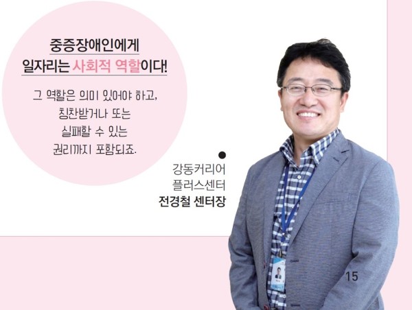 무엇보다 그 일을 하는 중증장애인의 주체적인 역할에 중점을 두었습니다. 이것을 시작으로 중증장애인 일자리를 위한 강동구 네트워크를 형성하고, 지역사회 지원체계를 만들어가는 게 보다 근본적인 지향입니다.