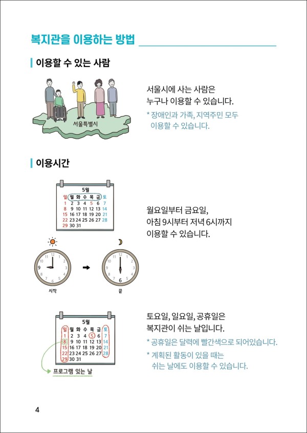 서울장애인종합복지관 쉬운 소개 책자 4페이지_ 소소한 소통 제작