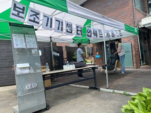 이러한 가운데 서울시동남보조기기센터는 7월 2일 센터 입구에 '보조기기센터 언택트 서비스존'을 만들어 서비스를 이어가기로 했습니다.