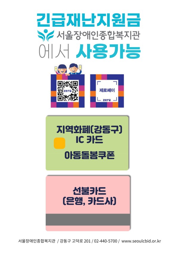 긴급재난지원금 서울장애인종합복지관에서 사용 가능합니다.