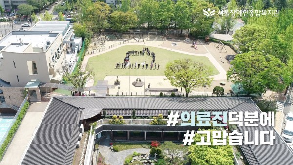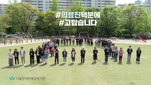 서울장애인종합복지관은 4월 29일 복지관 잔디밭에서 코로나19 위기 극복을 위해 헌신하는 의료진에게 감사와 응원을 전하는 ‘#덕분에 챌린지’에 동참했습니다.