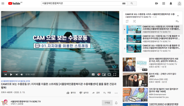 3월 15일 '지지대를 이용한 스트레칭' 영상이 서울장애인종합복지관 유튜브 채널에 업로드 된 이후