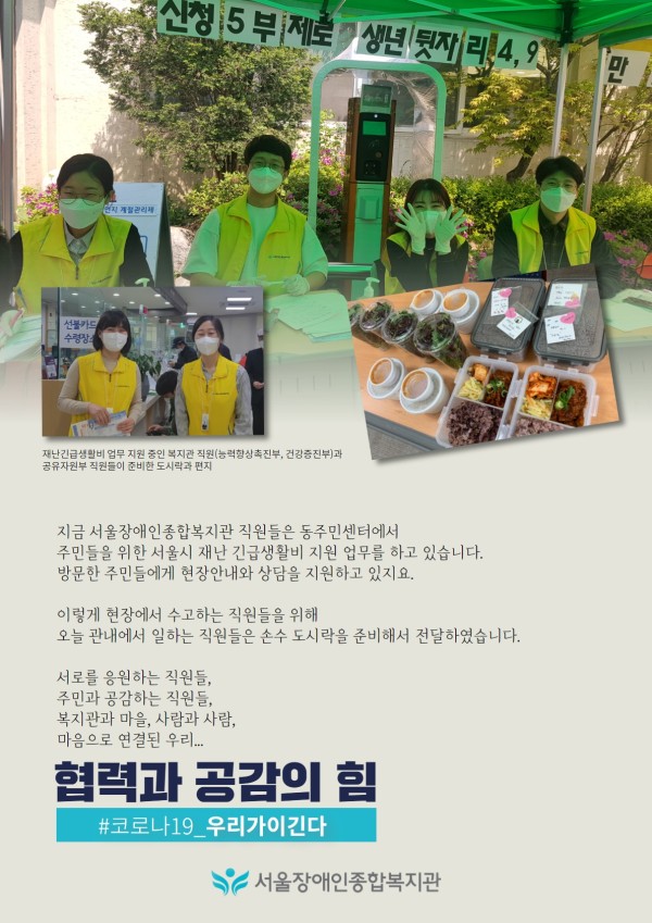 코로나19 이렇게 대응해요-협력과 공감의 힘 (서울시 재난 긴급생활비 지원 업무 중인 복지관 직원들)