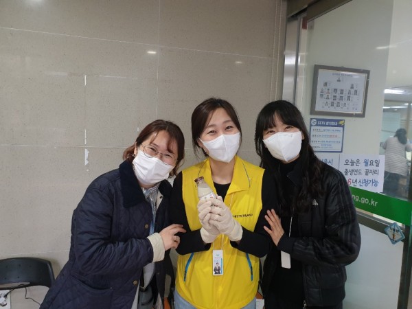(사진 왼쪽)동주민센터에서 지원 활동 중인 동료를 격려하기 위해 찾은 복지관 복지관의 또다른 동료들
