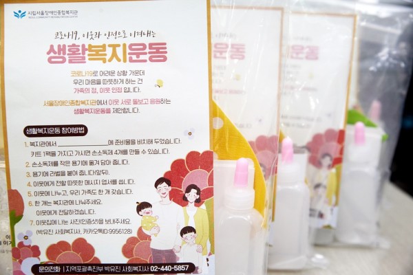 코로나19 이렇게 대응해요-만남 대신 마음을 나누는 생활복지운동(손소독제 나누기)
