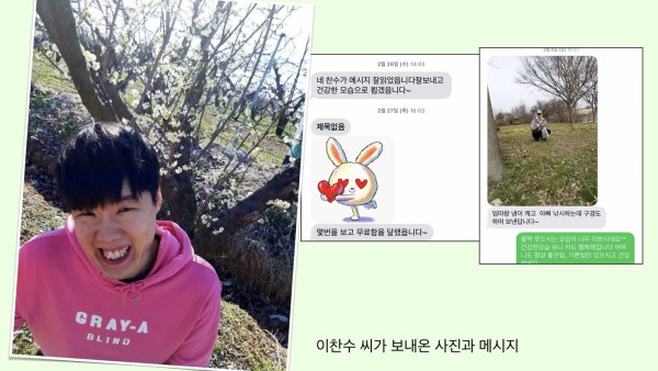 이찬수 훈련생은 복지관에서 오는 소식과 영상을 좋아해요