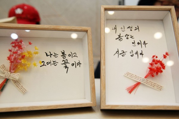 사진3. 글씨체 연습을 마친 후 액자에 넣을 문구를 직접 쓰고, 꾸미기까지. 완성된 작품을 들고 '찰칵~'