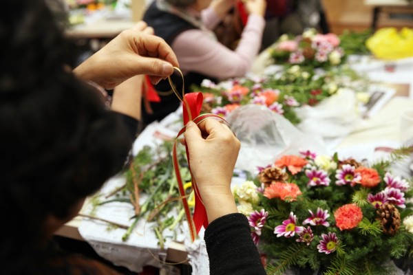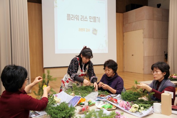연말 분위기 물씬 풍기는, 리스 만들기 활동도 했습니다. 일명 플라워 리스 만들기.