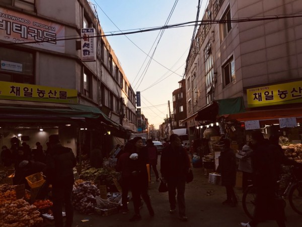 많은 손님들과 판매하는 직원들의 우렁찬 목소리로 시장 입구에 활기를 가득 불어넣고 있었습니다.