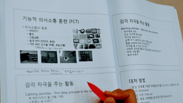 사진_수행기관 직원교육 교재와 메모 내용