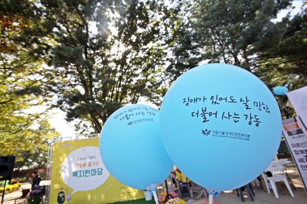 여기에 ‘장애가 있어도 살 만한, 더불어 사는 강동’ 메시지가 적힌 풍선도 함께 나눴습니다.