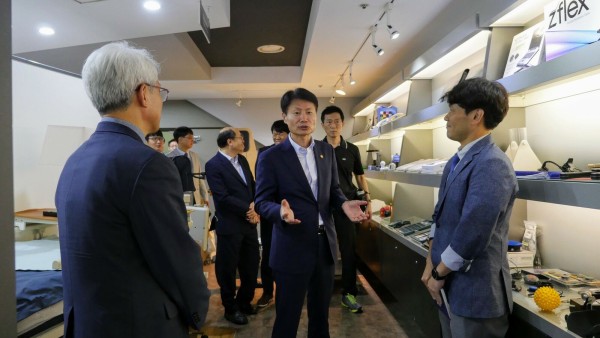 이어서 진행된 복지관 라운딩에서 김강립 차관은 주요 서비스실과 수중재활프로그램, 스누젤렌실, 보호작업장 파니스, 동남보조기기센터를 둘러보면서 구체적인 프로그램, 지역사회 연계 사업 등 다양한 영역에 대해 관심을 나타냈습니다.