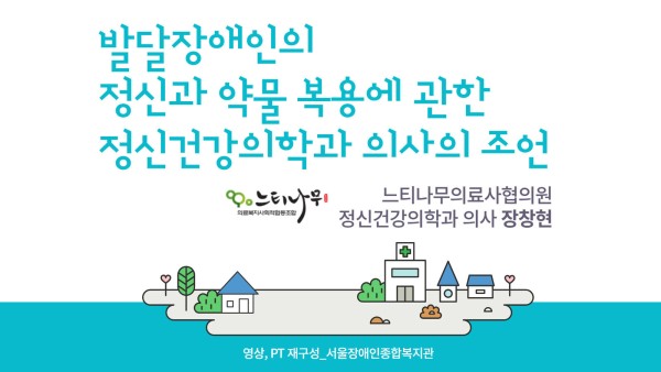 <발달장애인의 정신과 약물 복용에 관한 정신건강의학과 의사의 조언>(강의 : 느티나무의료사협의원 정신건강의학과 의사 장창현) 강의 자료입니다.